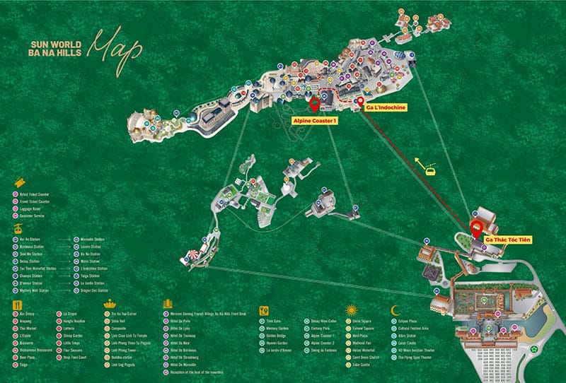Sau khi đến khu vực chân núi, bạn sẽ tiếp tục hành trình bằng cáp treo Bà Nà Hills kéo dài tầm 20 phút. Trong lúc ngồi, bạn được ngắm nhìn view toàn bộ thành phố, rừng núi hùng vĩ. Khi đến nhà ga Morin là điểm cuối của tuyến cáp treo, bạn sẽ chính thức đặt chân đến cánh cổng dẫn vào Làng Pháp.