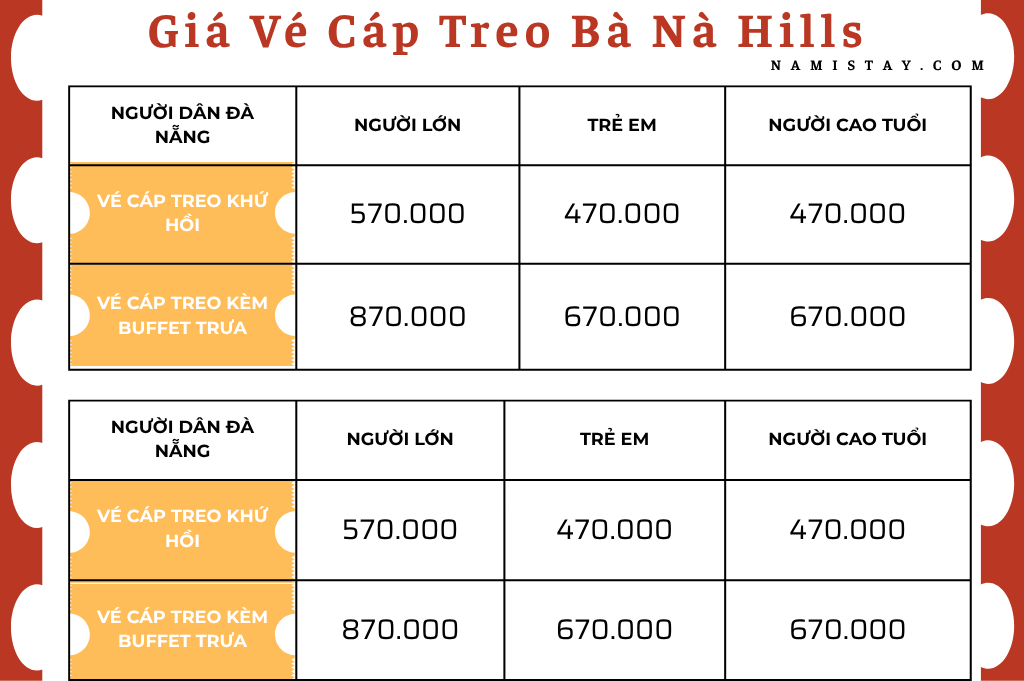 Giá vé cáp treo khứ hồi: