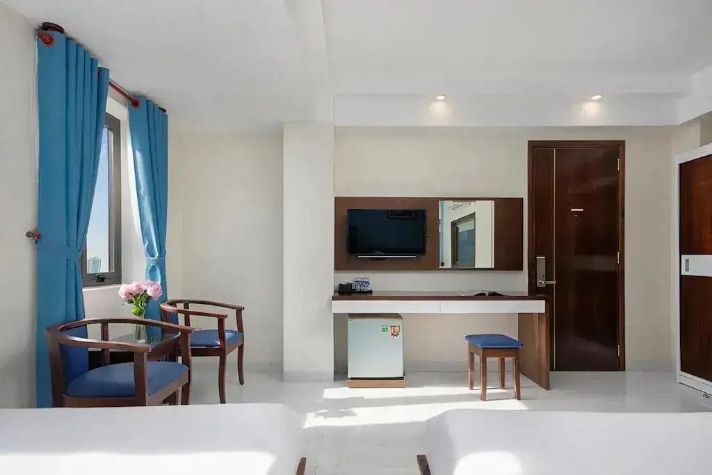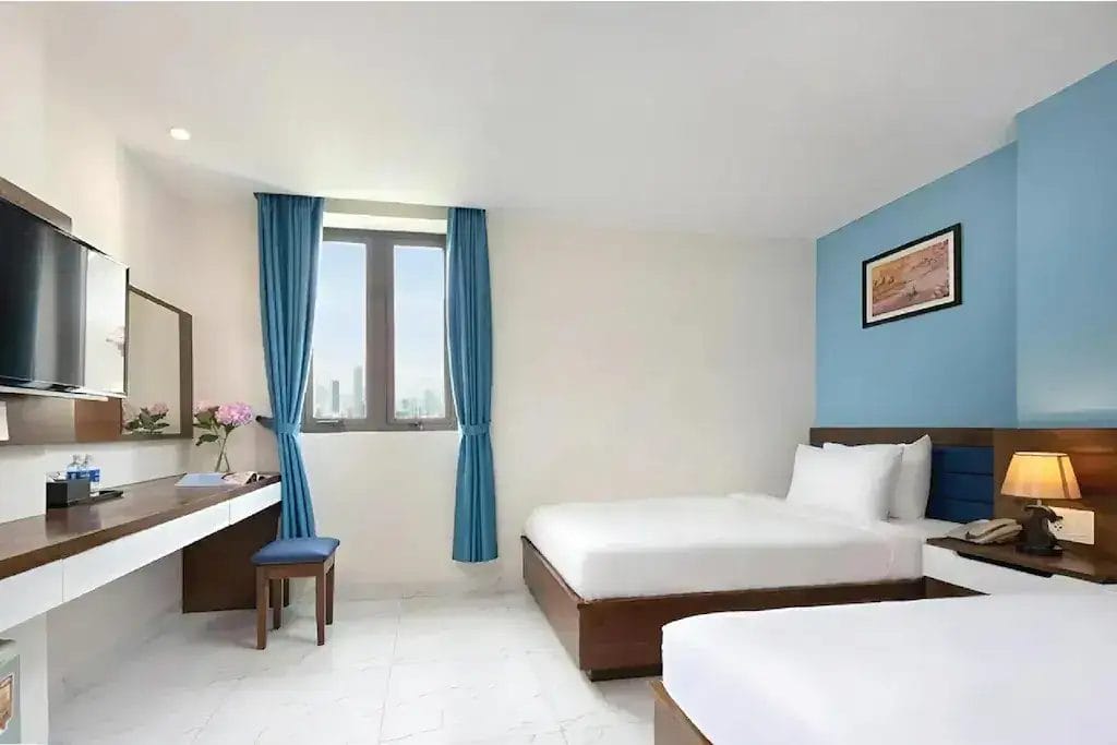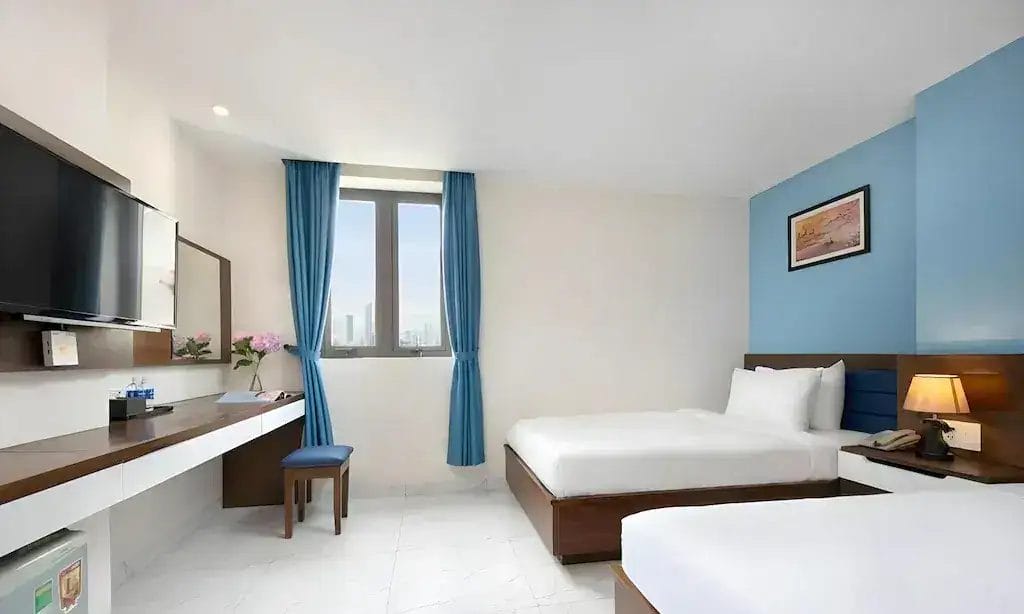 Blue Star Hotel Danang còn ghi điểm bởi hệ thống phòng đa dạng, phù hợp cho cả cá nhân, cặp đôi lẫn gia đình. Không chỉ dừng lại ở sự thoải mái, khách sạn còn mang đến trải nghiệm thú vị với hồ bơi, phòng gym và sauna miễn phí tại khách sạn Star cách chỉ 50m, cùng bữa sáng buffet Âu – Á phong phú phục vụ hàng ngày.