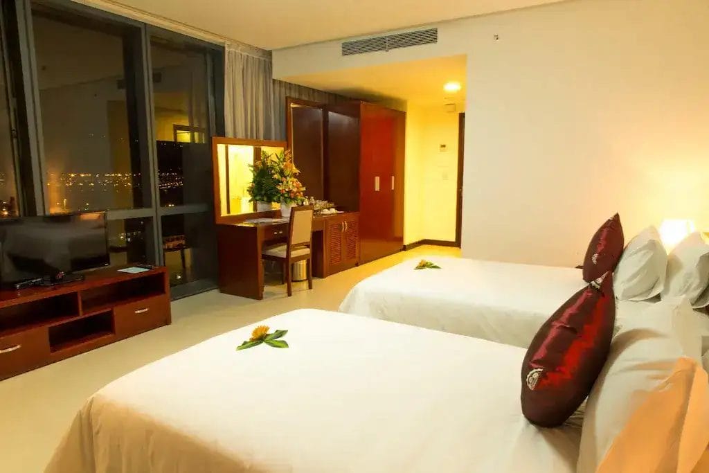 Phòng Superior City View – Double Bed rộng 30m2 mang đến một không gian sang trọng và đẳng cấp, hoàn hảo cho những ai tìm kiếm sự thoải mái và tiện nghi. Phòng được trang bị một giường đôi lớn hoặc hai giường đơn, cùng cửa sổ lớn mở ra tầm nhìn tuyệt đẹp hướng thành phố. Nội thất trong phòng được chọn lọc kỹ lưỡng với tủ gỗ, bàn ghế tinh tế và khu vực bếp tiện nghi, tạo nên một không gian sống lý tưởng. Với thiết kế hiện đại, phòng sáng sủa và rộng rãi, đây chắc chắn là lựa chọn hoàn hảo để bạn tận hưởng kỳ nghỉ đầy thư giãn và sang trọng tại Đà Nẵng.
