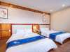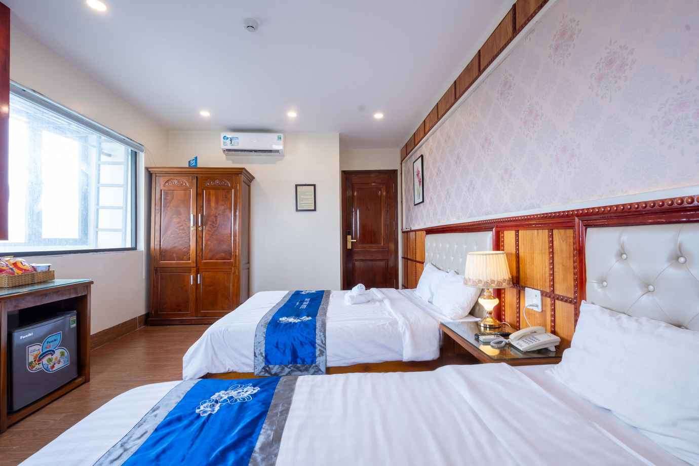 Phòng Family Room rộng 30m2 tại khách sạn mang đến không gian nghỉ ngơi thoải mái cho cả gia đình hoặc nhóm bạn. Phòng được trang bị hai giường cỡ queen, phù hợp cho tối đa 4 người, cùng cửa sổ lớn hướng phố, giúp bạn tận hưởng không khí trong lành và ánh sáng tự nhiên. Nội thất phòng được bố trí hài hòa với tủ gỗ, bàn ghế tiện nghi, mang đến sự ấm cúng và sang trọng. Với không gian rộng rãi và đầy đủ tiện ích, Family Room chính là lựa chọn lý tưởng để du khách thư giãn và tận hưởng kỳ nghỉ trọn vẹn.