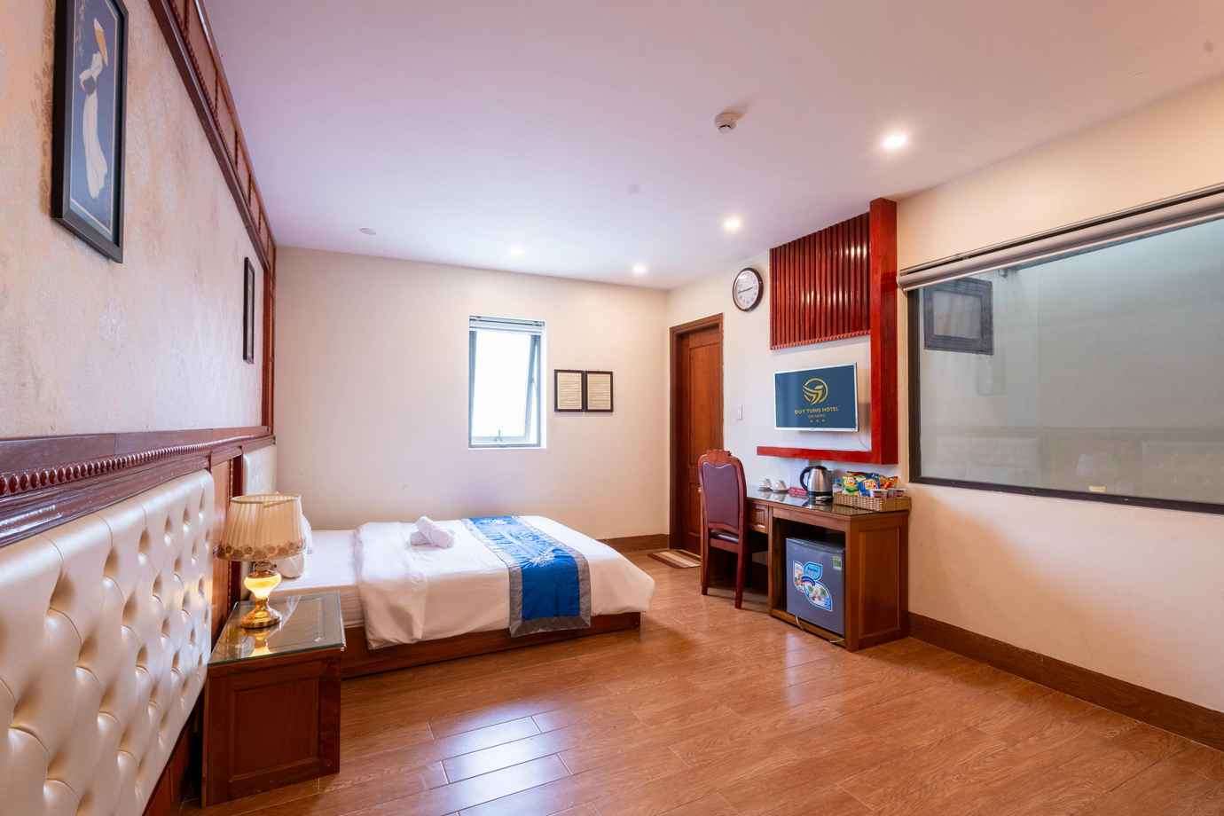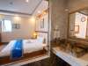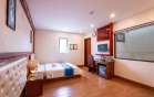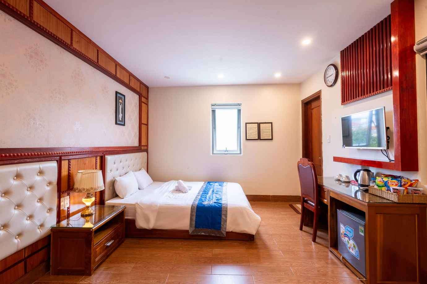 Phòng Deluxe Room tại khách sạn có diện tích 28m2, trang bị giường cỡ king rộng rãi, mang đến sự thoải mái tối đa cho du khách. Phòng được thiết kế tinh tế với cửa sổ lớn hướng phố, cho phép bạn tận hưởng ánh sáng tự nhiên và ngắm nhìn cảnh quan thành phố. Nội thất trong phòng được bố trí đầy đủ với tủ gỗ sang trọng, bàn ghế tiện nghi, tạo không gian ấm cúng và hiện đại. Đây là lựa chọn lý tưởng cho những ai tìm kiếm một kỳ nghỉ thư giãn với chất lượng dịch vụ hoàn hảo.