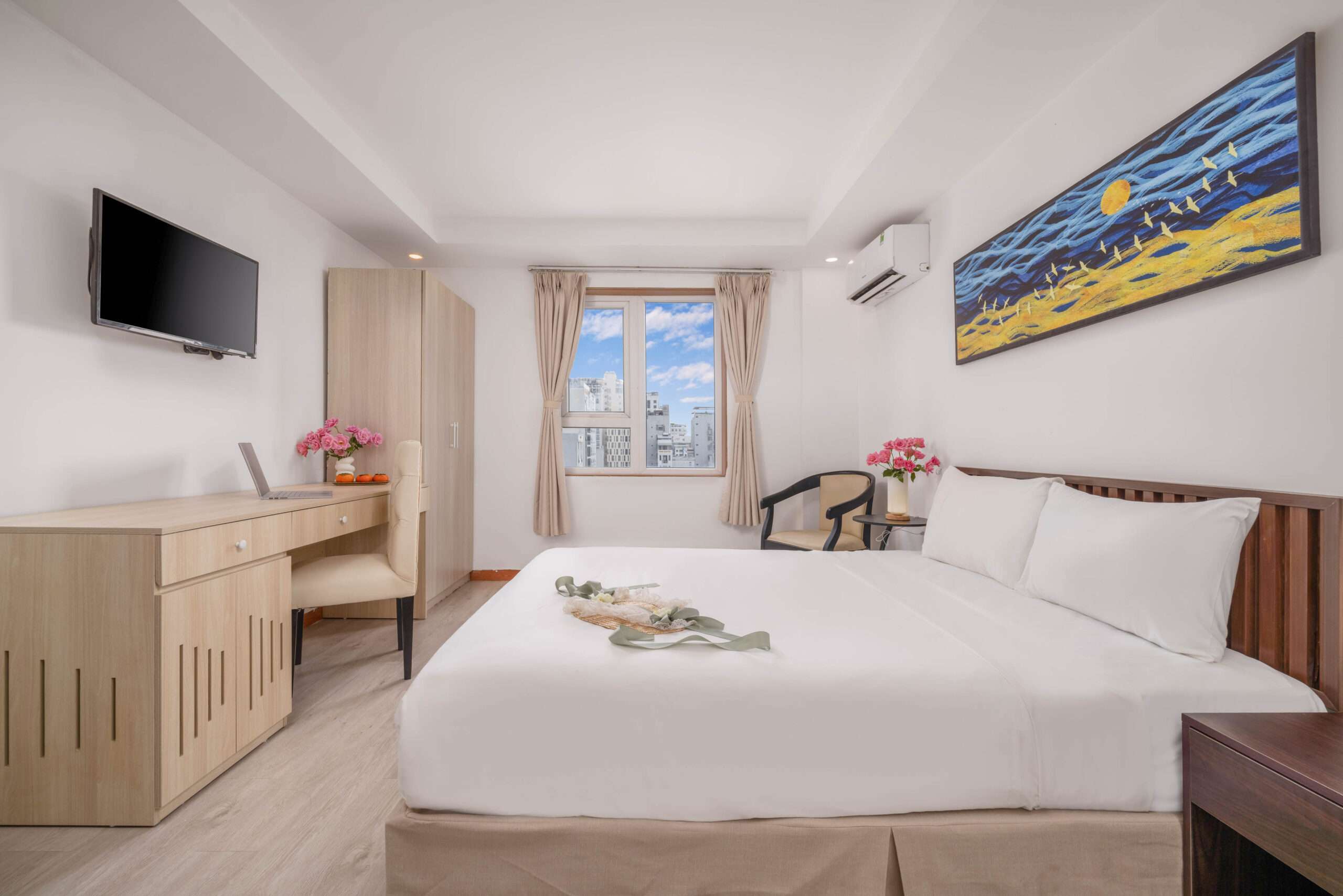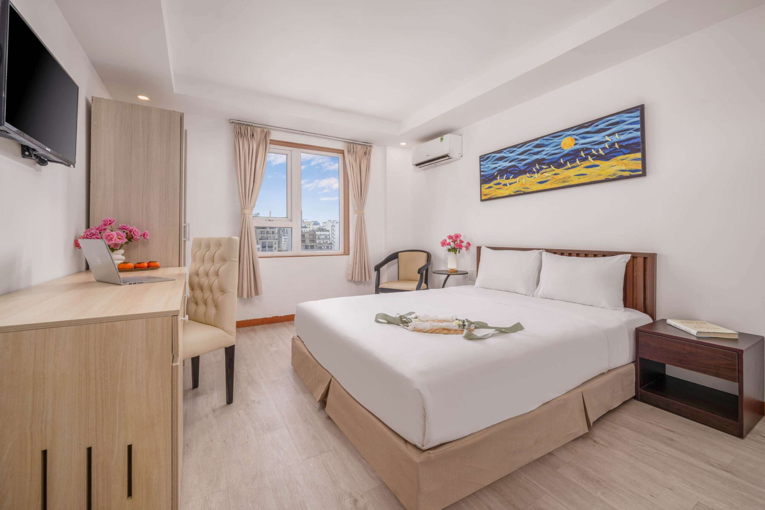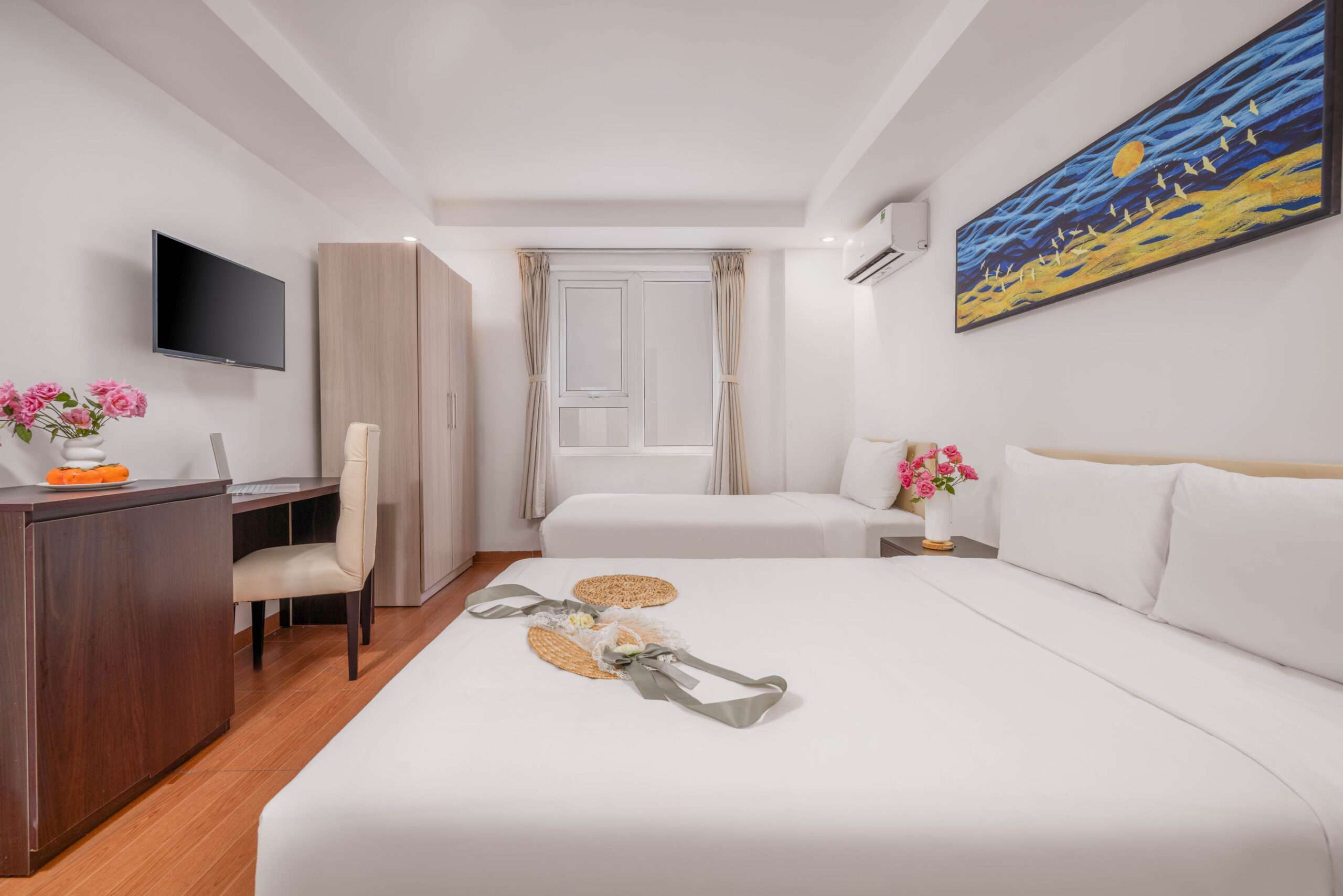 Phòng Family Room tại Haya Boutique Hotel là sự lựa chọn tuyệt vời cho các gia đình có trẻ nhỏ. Với một giường lớn và một giường nhỏ, không gian rộng rãi sẽ tạo điều kiện thuận lợi cho cả gia đình cùng nghỉ ngơi thoải mái. Cửa sổ lớn không chỉ mang lại ánh sáng tự nhiên mà còn giúp bạn thưởng thức cảnh quan xung quanh. Không gian ấm cúng và thân thiện sẽ là nơi lý tưởng để gia đình bạn tạo nên những kỷ niệm đáng nhớ trong kỳ nghỉ tại Đà Nẵng.