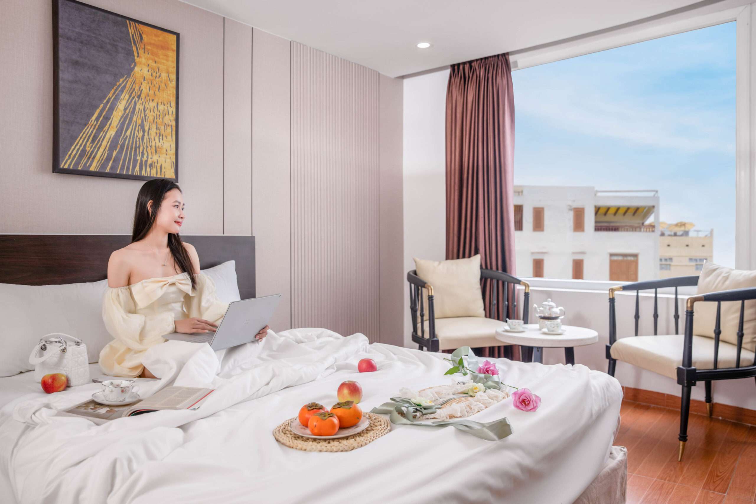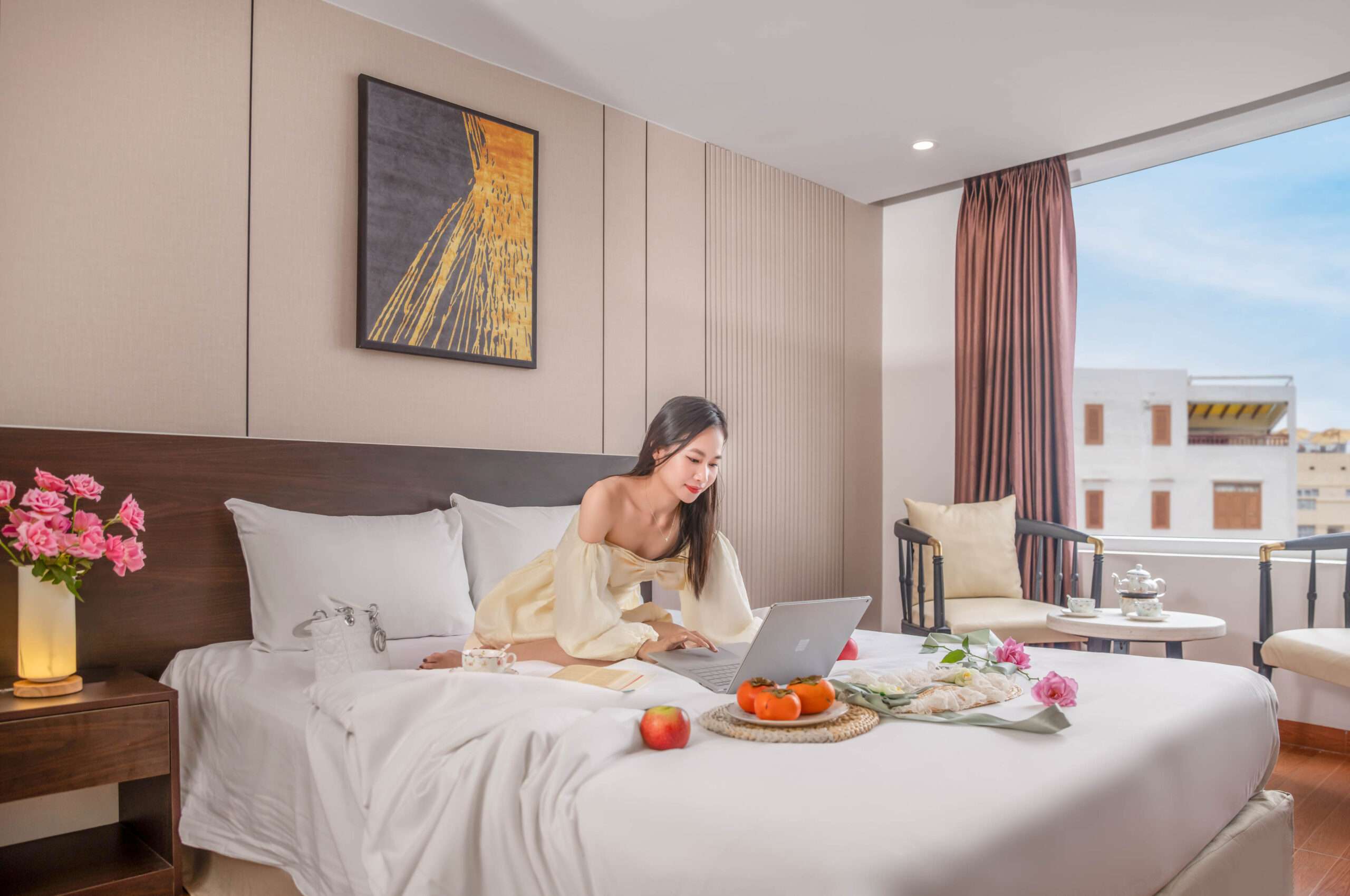 Tại Haya Boutique Hotel, phòng Deluxe Double Room mang đến cho bạn một trải nghiệm nghỉ ngơi sang trọng và ấm cúng. Với thiết kế kiểu boutique, phong cách nội thất Indochine, mỗi phòng đều được trang trí tinh tế, tạo nên không gian thân thiện và gần gũi. Cửa sổ siêu lớn cho phép ánh sáng tự nhiên tràn ngập, giúp bạn cảm nhận được sự tươi mới và thoáng đãng.