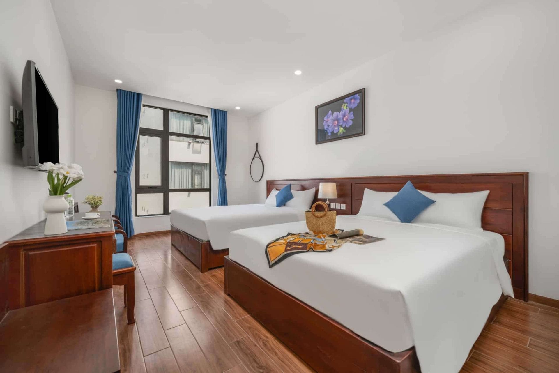 Phòng deluxe giành cho 3 người là lựa chọn hoàn hảo cho nhóm bạn hoặc gia đình nhỏ với 1 giường 1m6 và 1 giường 1m2. Phòng có một ô cửa sổ nhỏ, mang lại ánh sáng tự nhiên và không khí thoáng đãng. Với sức chứa tối đa 4 người lớn, đây là nơi lý tưởng để bạn cùng những người thân yêu tận hưởng kỳ nghỉ. Mặc dù không thể kê thêm giường phụ, nhưng không gian rộng rãi và thoải mái sẽ khiến bạn cảm thấy dễ chịu và thư giãn sau những giờ khám phá Đà Nẵng.