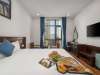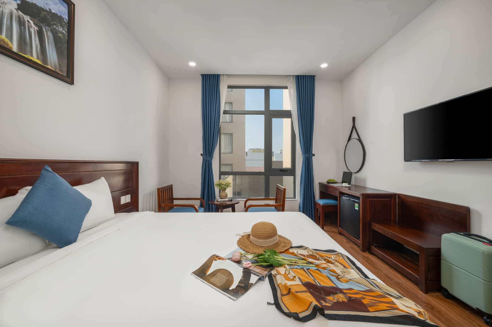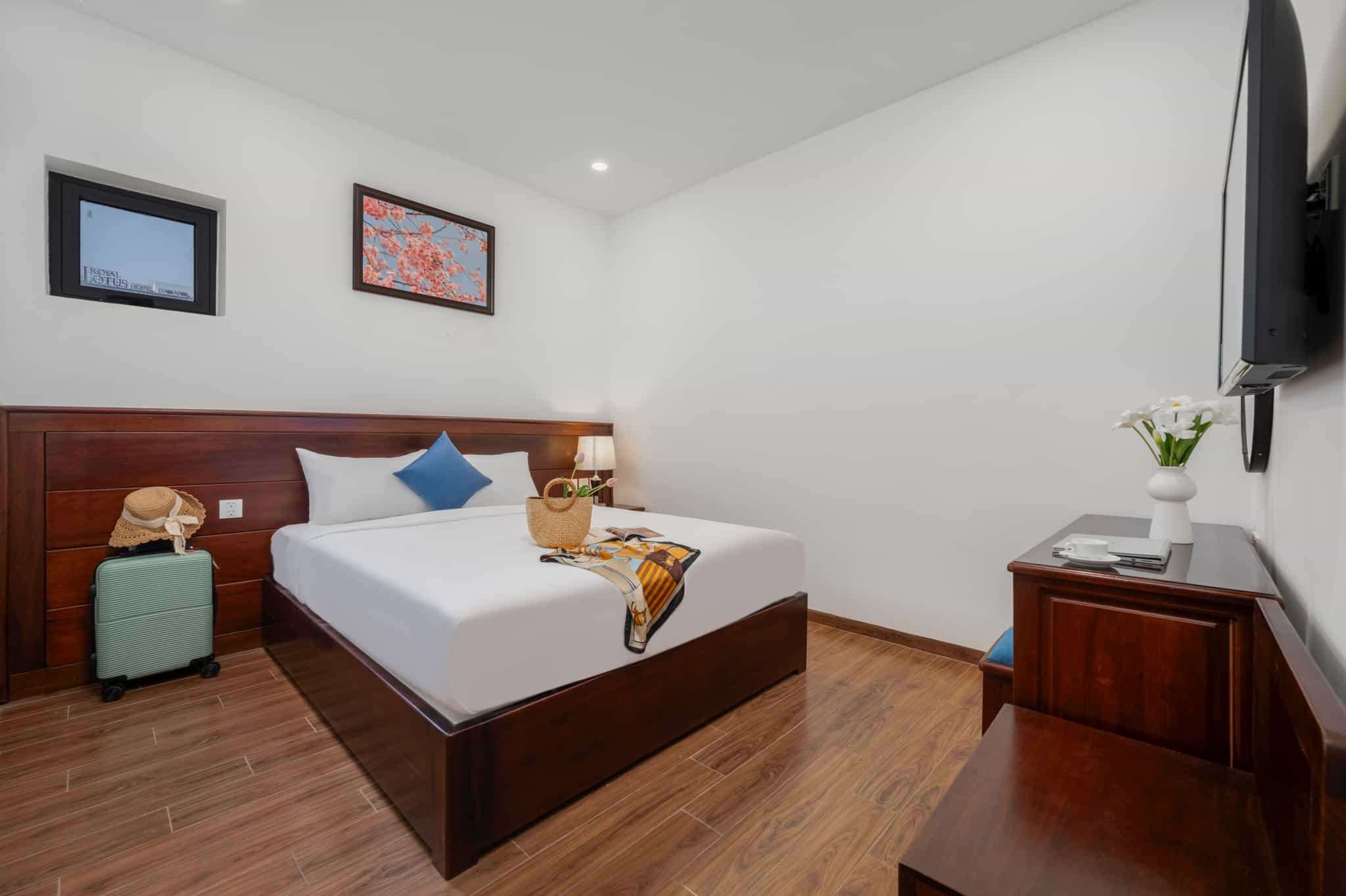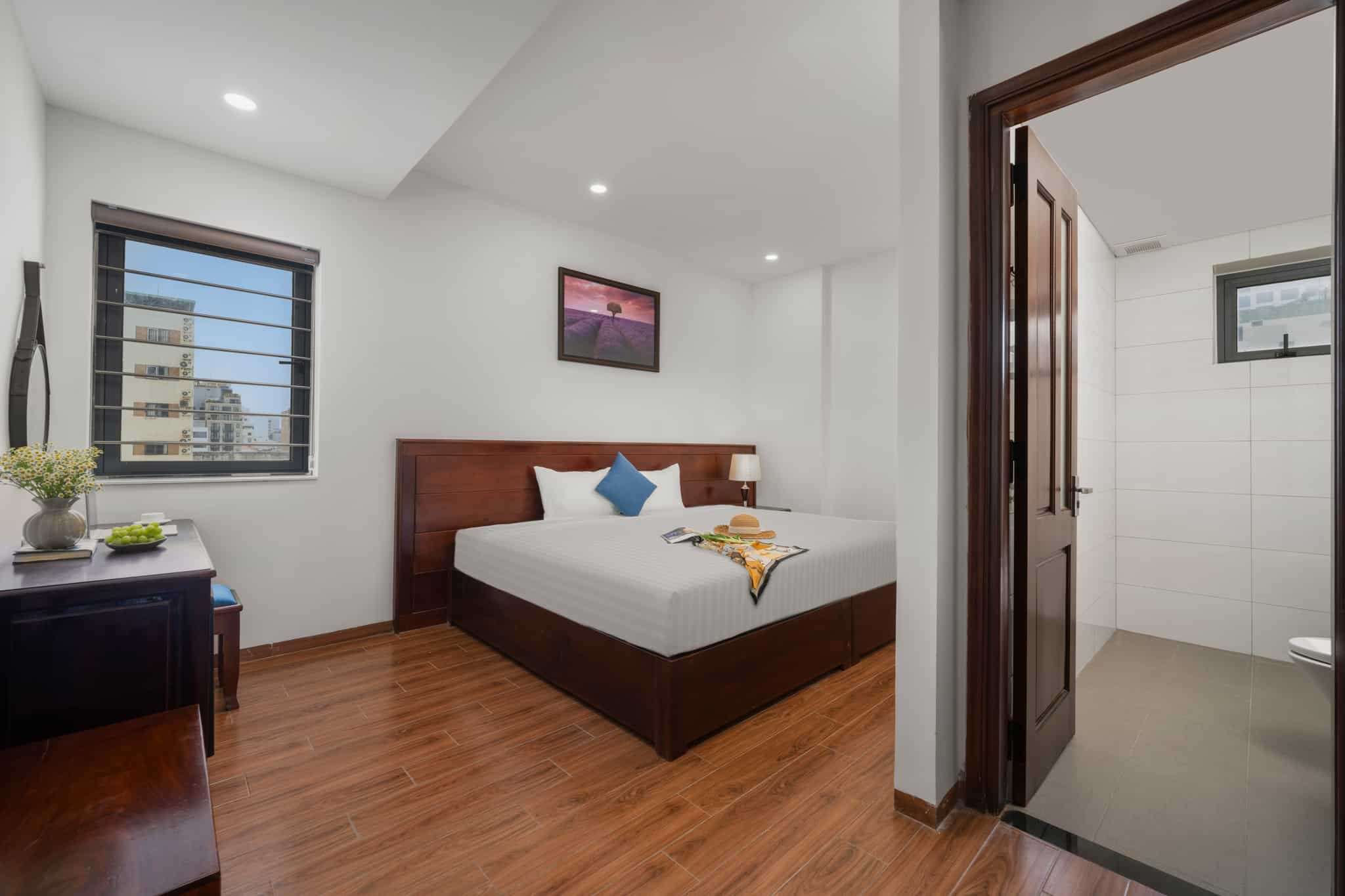 Phòng deluxe giành cho 3 người là lựa chọn hoàn hảo cho nhóm bạn hoặc gia đình nhỏ với 1 giường 1m6 và 1 giường 1m2. Phòng có một ô cửa sổ nhỏ, mang lại ánh sáng tự nhiên và không khí thoáng đãng. Với sức chứa tối đa 4 người lớn, đây là nơi lý tưởng để bạn cùng những người thân yêu tận hưởng kỳ nghỉ. Mặc dù không thể kê thêm giường phụ, nhưng không gian rộng rãi và thoải mái sẽ khiến bạn cảm thấy dễ chịu và thư giãn sau những giờ khám phá Đà Nẵng.