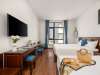 Phòng giường lớn hạng superior với diện tích 24m2 mang đến sự thoải mái cho tối đa 2 người lớn và 1 trẻ em. Với 1 giường lớn 2m4 và cửa sổ thoáng đãng nhìn ra góc biển từ xa, phòng này tạo ra không gian lý tưởng cho gia đình hoặc nhóm bạn. Nội thất hiện đại và tiện nghi đầy đủ sẽ giúp bạn cảm thấy như đang ở nhà. Đặc biệt, với mức phụ thu hợp lý, bạn có thể tận hưởng kỳ nghỉ cùng những người thân yêu mà không lo về không gian.