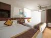 Phòng Gia Đình Có Ban Công rộng 30m2, trang bị 2 giường đôi lớn, mang đến không gian thoải mái cho gia đình hoặc nhóm bạn. Phòng có cửa sổ lớn và ban công riêng hướng biển, giúp đón ánh sáng tự nhiên và tạo cảm giác thoáng đãng, dễ chịu. Nội thất phòng đầy đủ tiện nghi, từ bàn ghế đến các thiết bị hiện đại, đảm bảo sự tiện lợi và thoải mái tối đa. Với không gian rộng rãi, phòng sáng sủa và giá cả hợp lý, đây là lựa chọn lý tưởng cho kỳ nghỉ của bạn.