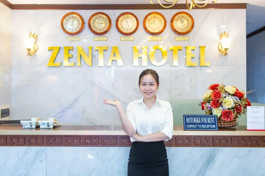 Ngoài các tiện nghi phòng nghỉ, Zenta Hotel còn cung cấp nhiều dịch vụ tiện ích cho du khách như lễ tân 24/7, dịch vụ phòng, cho thuê xe đạp và xe máy. Khách sạn cũng cung cấp dịch vụ đưa đón sân bay, giúp bạn di chuyển thuận tiện và dễ dàng đến các điểm du lịch. Đặc biệt, khách sạn còn hỗ trợ đặt tour tham quan địa phương, mang lại trải nghiệm khám phá Đà Nẵng trọn vẹn hơn.
