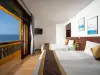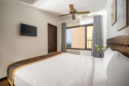 Phòng Deluxe Giường Đôi Nhìn ra Biển rộng 23m2, được trang bị 1 giường đôi lớn, mang đến không gian nghỉ ngơi thoải mái và lãng mạn. Phòng có cửa sổ lớn hướng biển, đón ánh sáng tự nhiên, tạo cảm giác thoáng đãng và dễ chịu. Với thiết kế tinh tế và đầy đủ tiện nghi, phòng đảm bảo sự thoải mái cho du khách, từ nội thất hiện đại đến các tiện ích như tủ quần áo, TV, minibar. Đây là lựa chọn lý tưởng cho những ai muốn thư giãn với không gian sáng sủa, đẹp mắt và tầm nhìn biển tuyệt vời, với mức giá hợp lý.