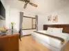 Khách sạn cung cấp 19 phòng nghỉ được trang bị đầy đủ tiện nghi hiện đại như điều hòa, TV màn hình phẳng, minibar và vòi sen hiện đại. Nhiều phòng có ban công riêng, cho phép du khách thư giãn và ngắm nhìn khung cảnh biển tuyệt đẹp. Các phòng đều được thiết kế đơn giản nhưng tinh tế, mang đến không gian nghỉ ngơi thoải mái và dễ chịu, giúp bạn thư giãn sau một ngày dài khám phá thành phố.